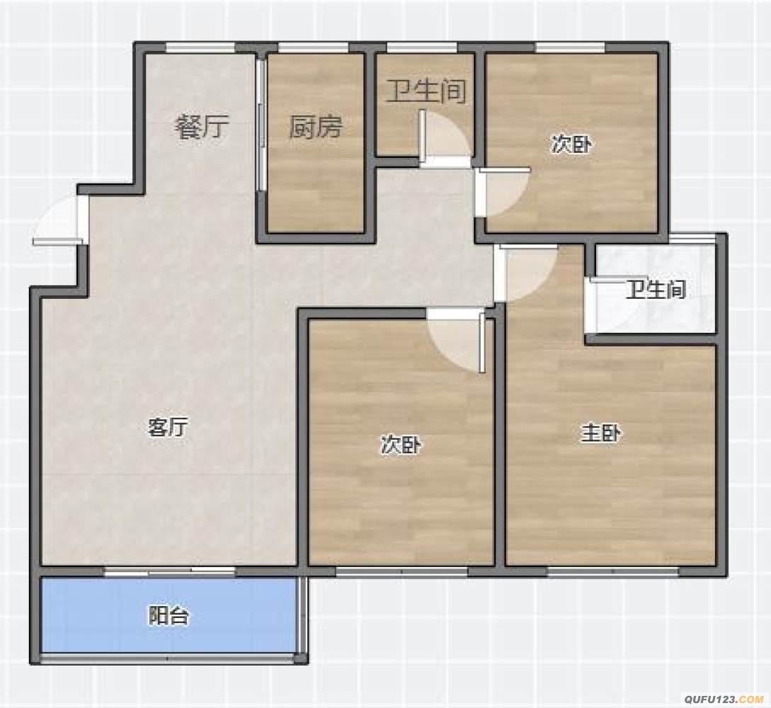 房屋户型:3 室 2 厅 2 卫 1 厨