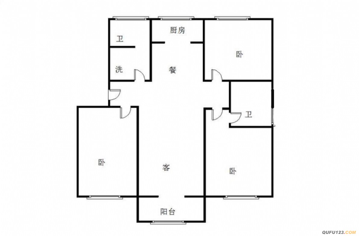 房屋户型:3 室 0 厅 2 卫 1 厨