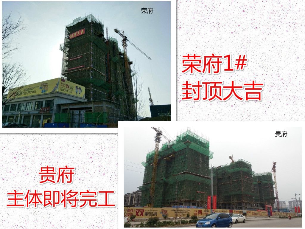 进度刚刚好 荣府1#封顶大吉、贵府主体施工至15层,安家置业,离幸福生活更进一步,心里踏实!