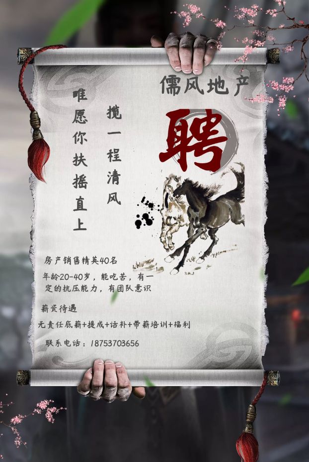 曲阜儒风地产锦华苑店招聘房产销售精英。